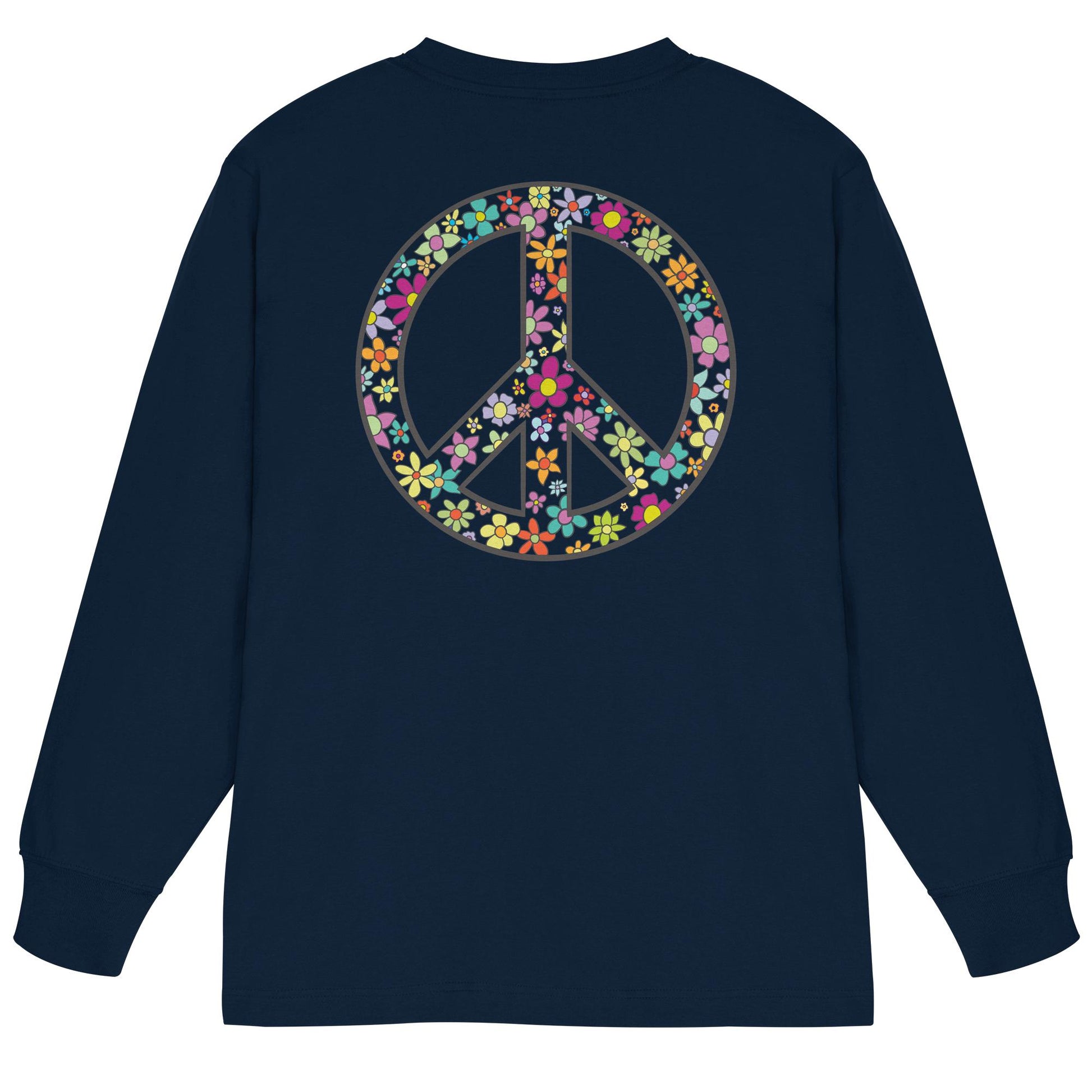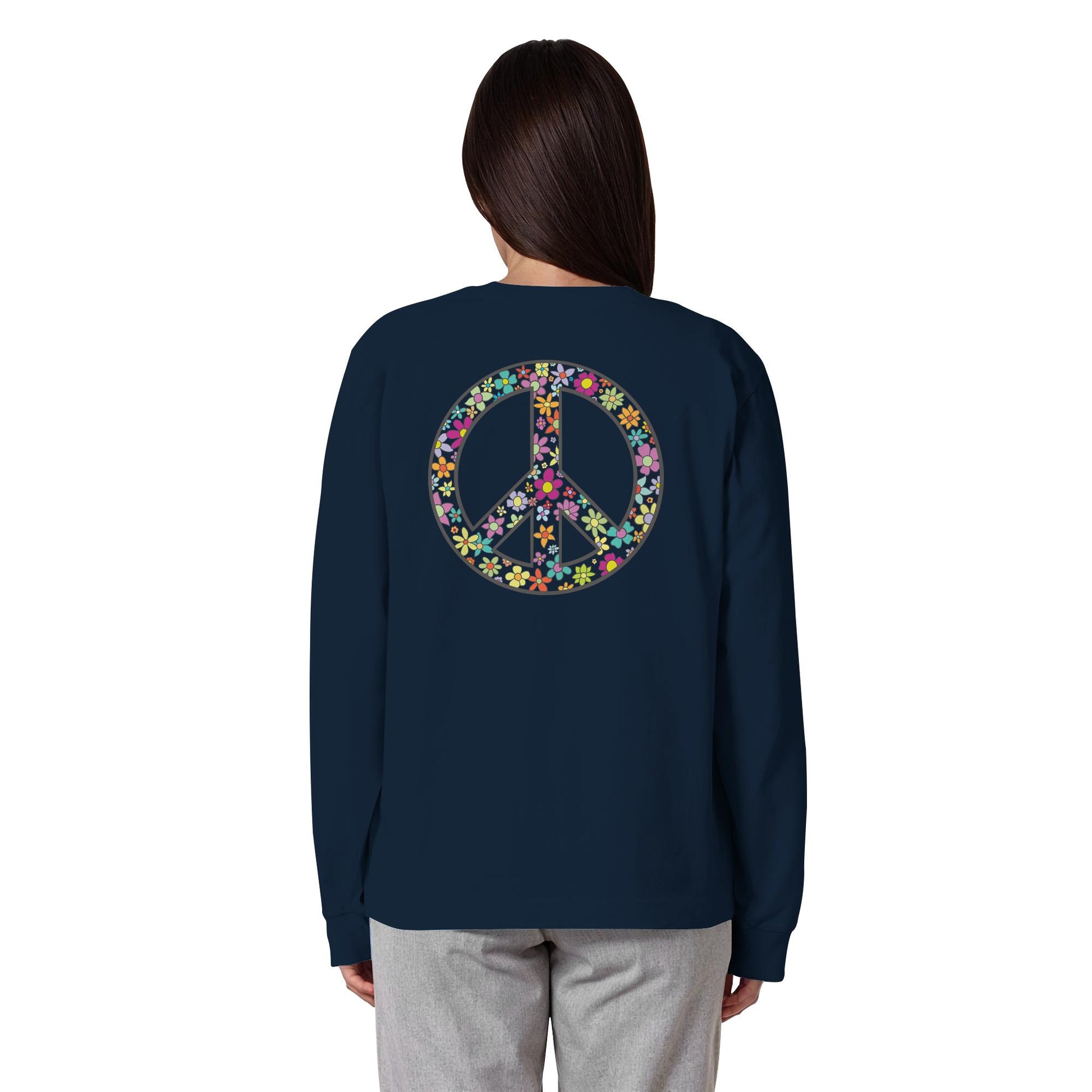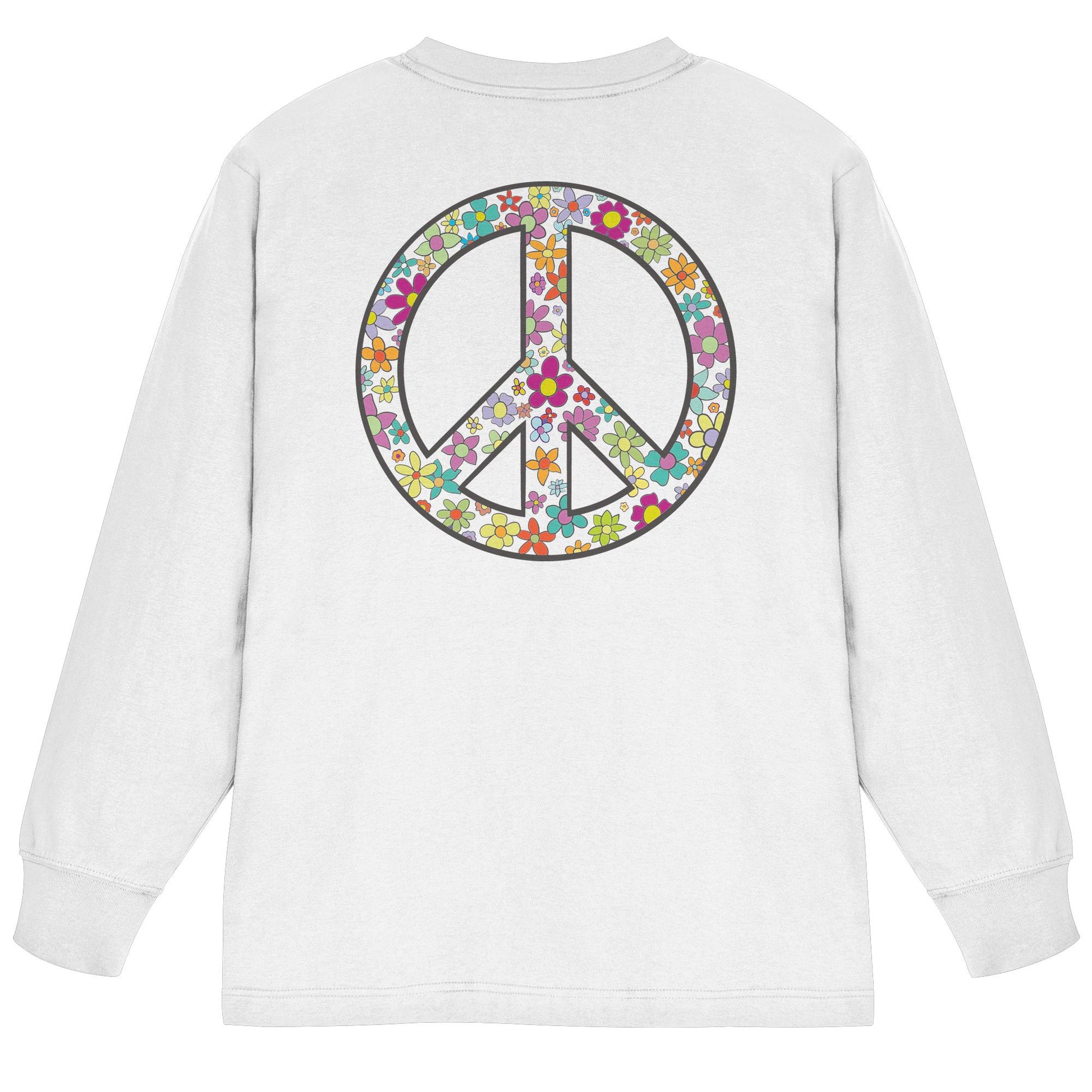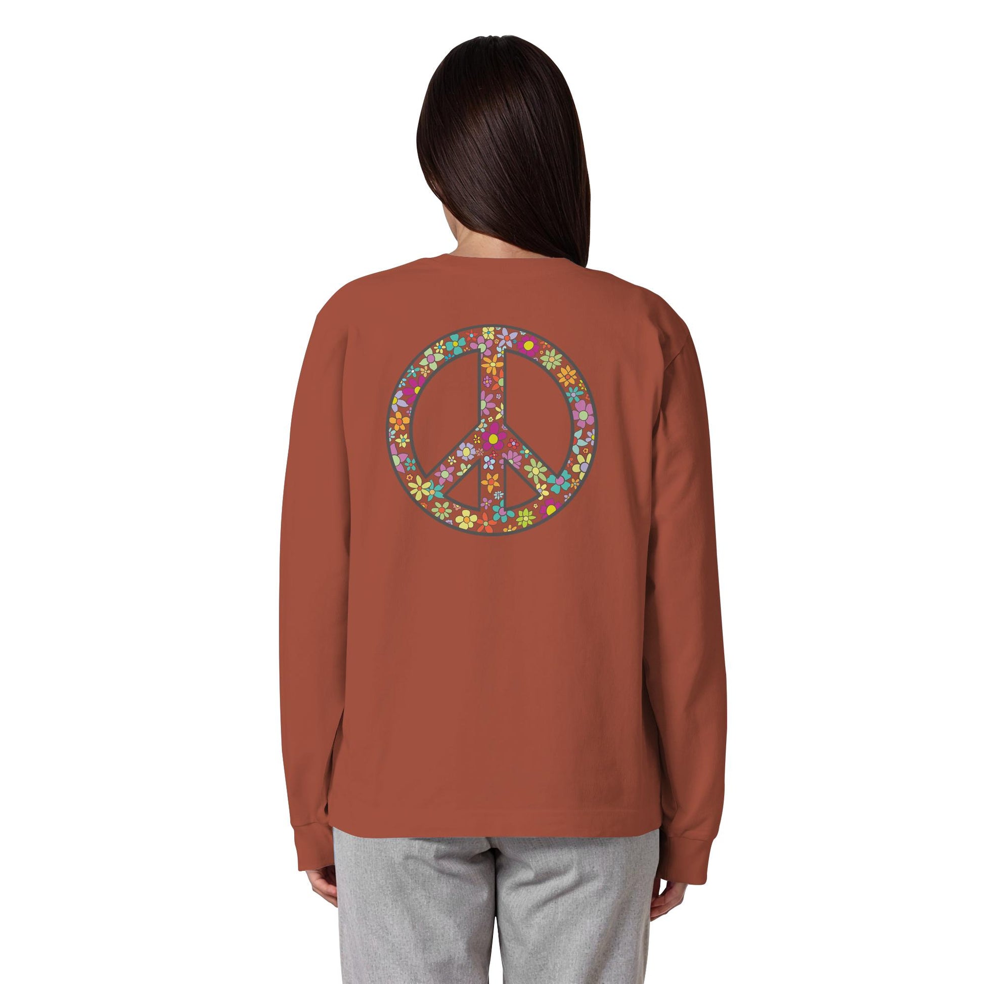 Erleben Sie den Zauber von Frieden, Wellen und Sonnenuntergängen mit unserem "Peace. Waves. Sunsets." - Organisches Oversize Longsleeve T-Shirt. Dieses einzigartige Design kombiniert florale und herzförmige Motive in harmonischen Farben, die Wärme und Gelassenheit ausstrahlen.