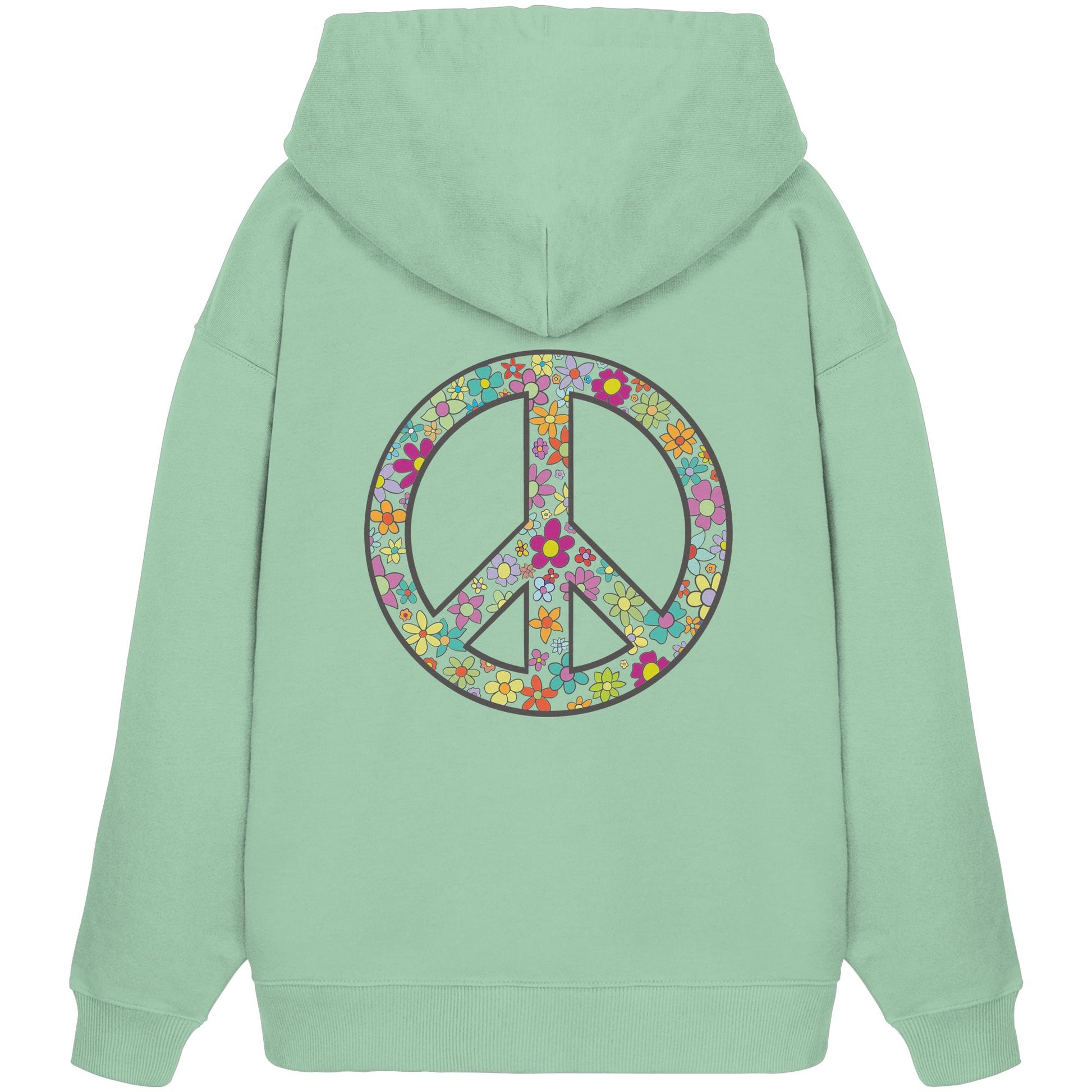 Erleben Sie den ultimativen Komfort und Stil mit unserem Peace. Waves. Sunsets. - Organic Oversize Hoodie. Lassen Sie sich von den lebendigen Farben und dem harmonischen Design inspirieren, das Frieden und Gelassenheit symbolisiert.