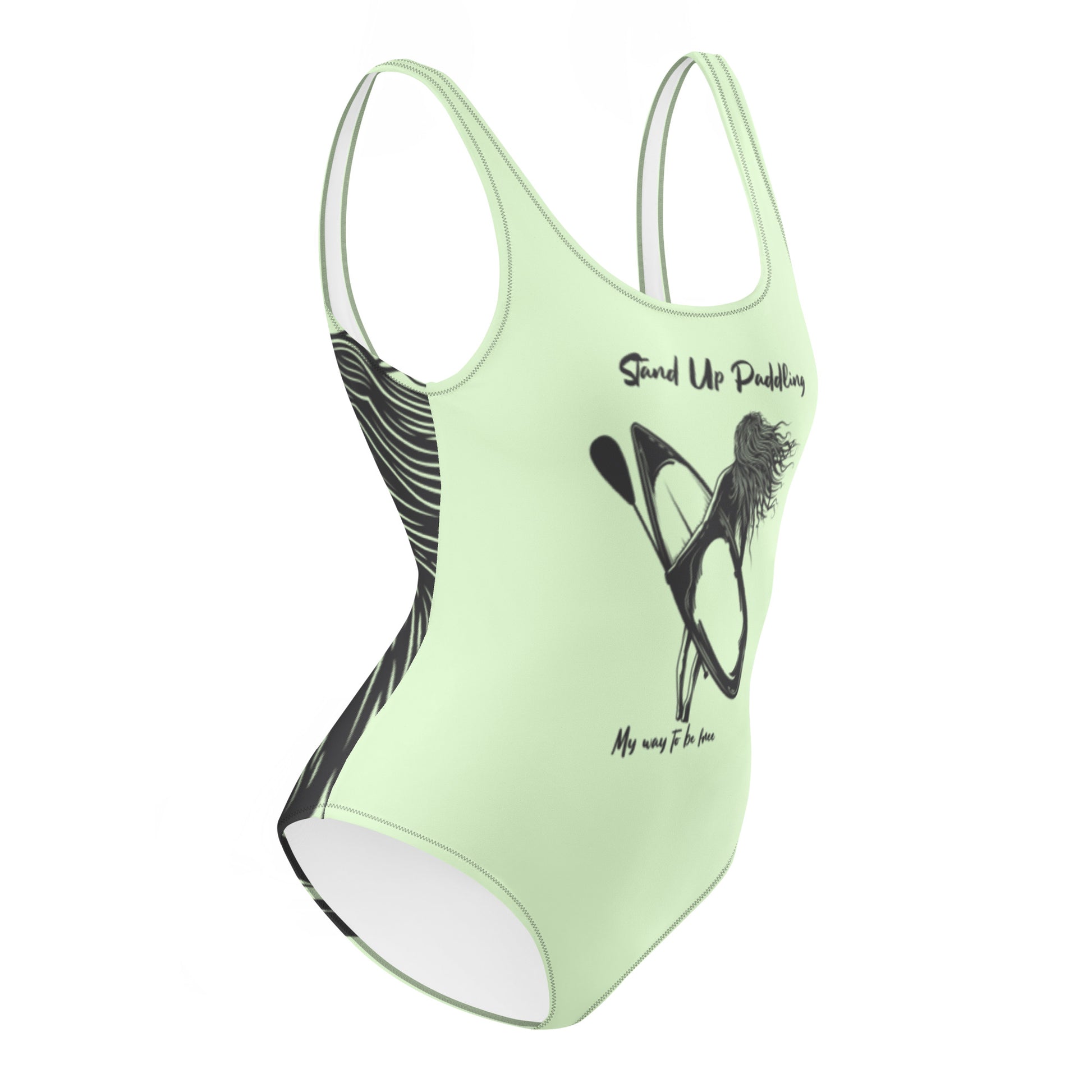 Dieser einteilige Badeanzug für alle Figuren wird deine besten Eigenschaften zur Geltung bringen. Stand Up Paddling- My way to be free ist unser Design für alle, die die Zeit auf dem Wasser genießen und dort völlig frei sein wollen von dem Alltag und seinen Herausforderungen.